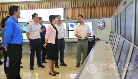 5月18日,中国气象局副局长矫梅燕率预报与网络司副司长杨引明、气象信息化领导小组办公室常务副主任曾沁一行,在自治区气象局局长刘家清的陪同下,到崇左市气象部门开展基层气象工作调研。